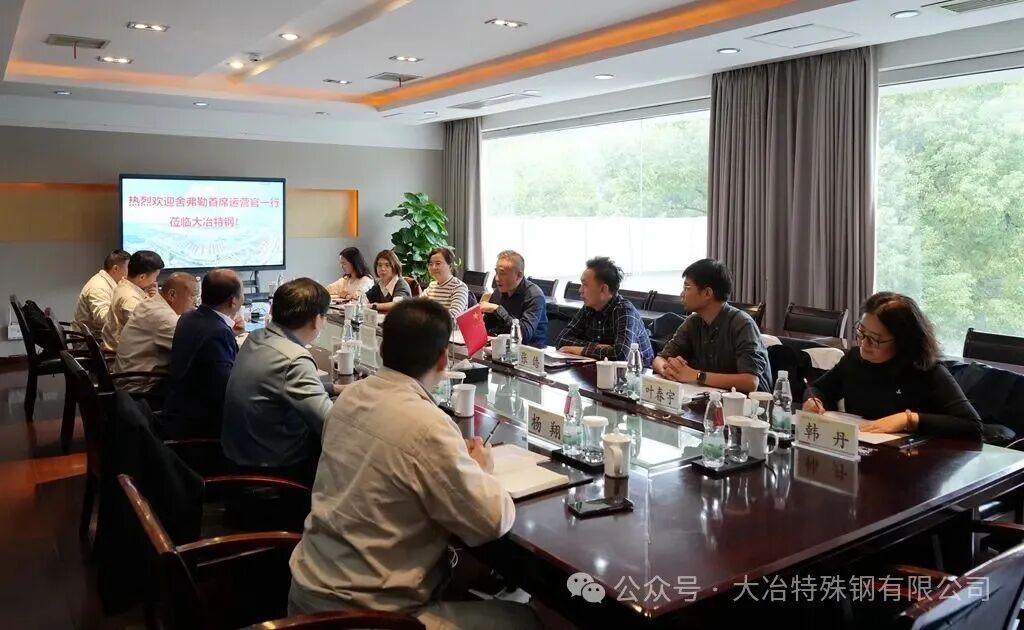 11月7日,舍弗勒中國(guó)區(qū)首席運(yùn)營(yíng)及供應(yīng)鏈管理官潘朔端率南京工廠管理層一行來(lái)訪大冶特鋼,雙方圍繞供應(yīng)鏈協(xié)同深化、技術(shù)創(chuàng)新賦能等核心議題開(kāi)展深入交流,大冶特鋼黨委書記、總經(jīng)理劉文學(xué),副總經(jīng)理童憶,總經(jīng)理助理陳章明、劉光輝參加交流。